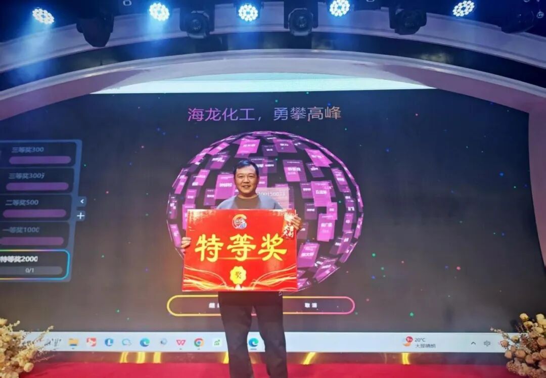 在歡聲笑語與溫暖祝福交織的氛圍中,海龍化工團年晚宴圓滿落下帷幕。這是一個用笑聲串聯(lián)、用溫情包裹的夜晚,我們以盛宴犒勞過往,以抽獎饋贈幸運。舊歲已展千重錦,新年再進百尺竿,海龍人將繼續(xù)同心奮進、聚力前行,攜手再攀新高峰!